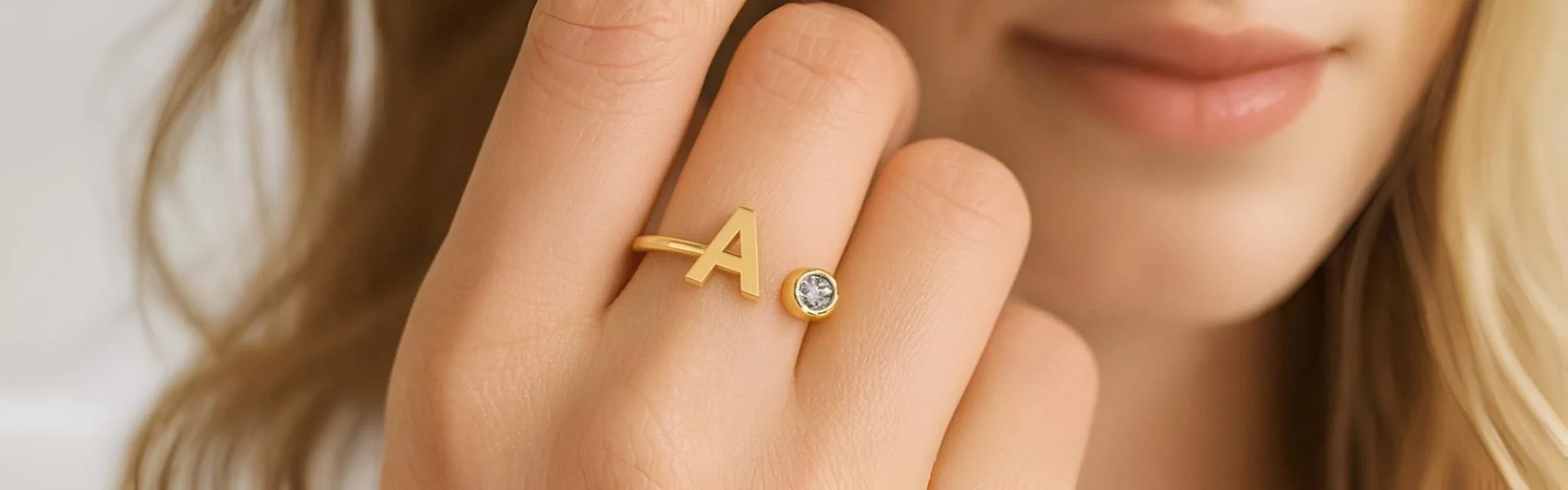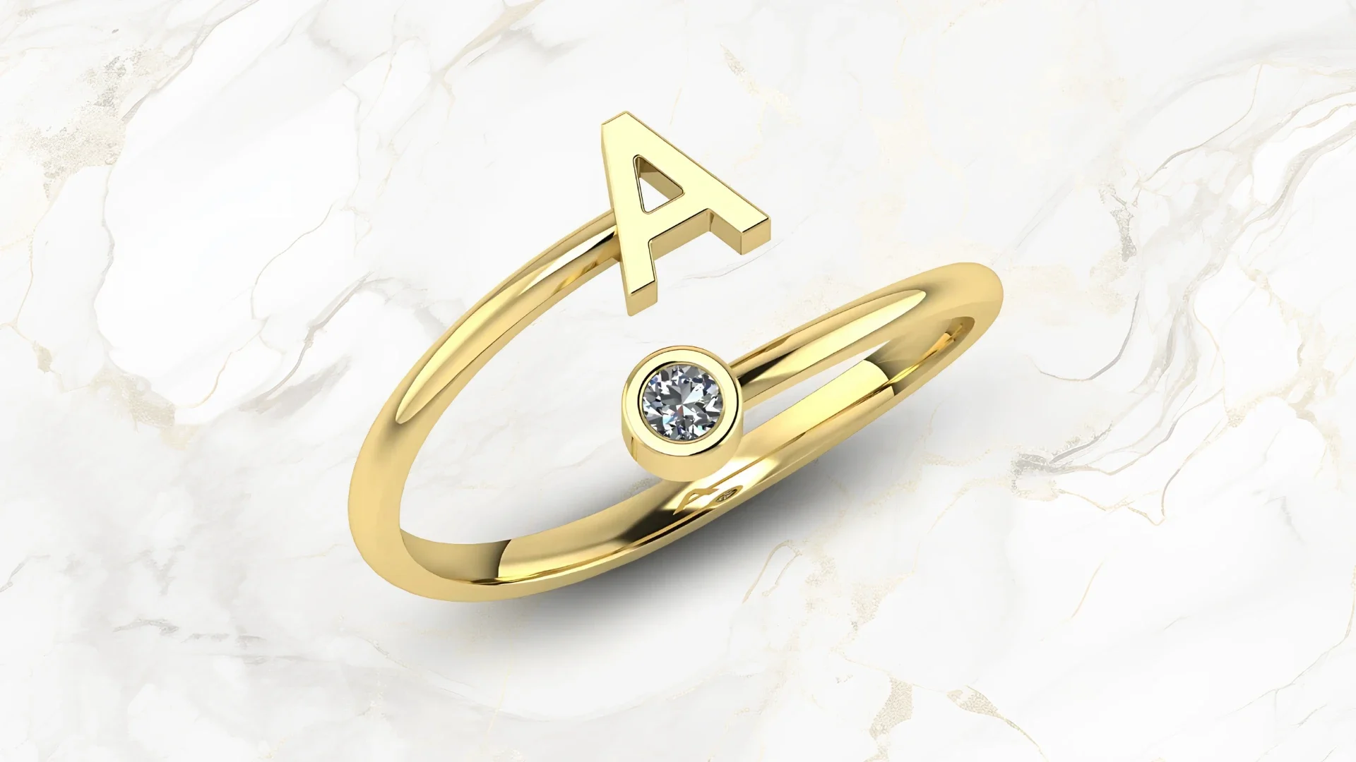 A radiant golden ring with a single elegant turn, featuring an embossed letter "A" in flowing script, exuding timeless charm.99 $ – 499 $Price range: 99 $ through 499 $View Product -